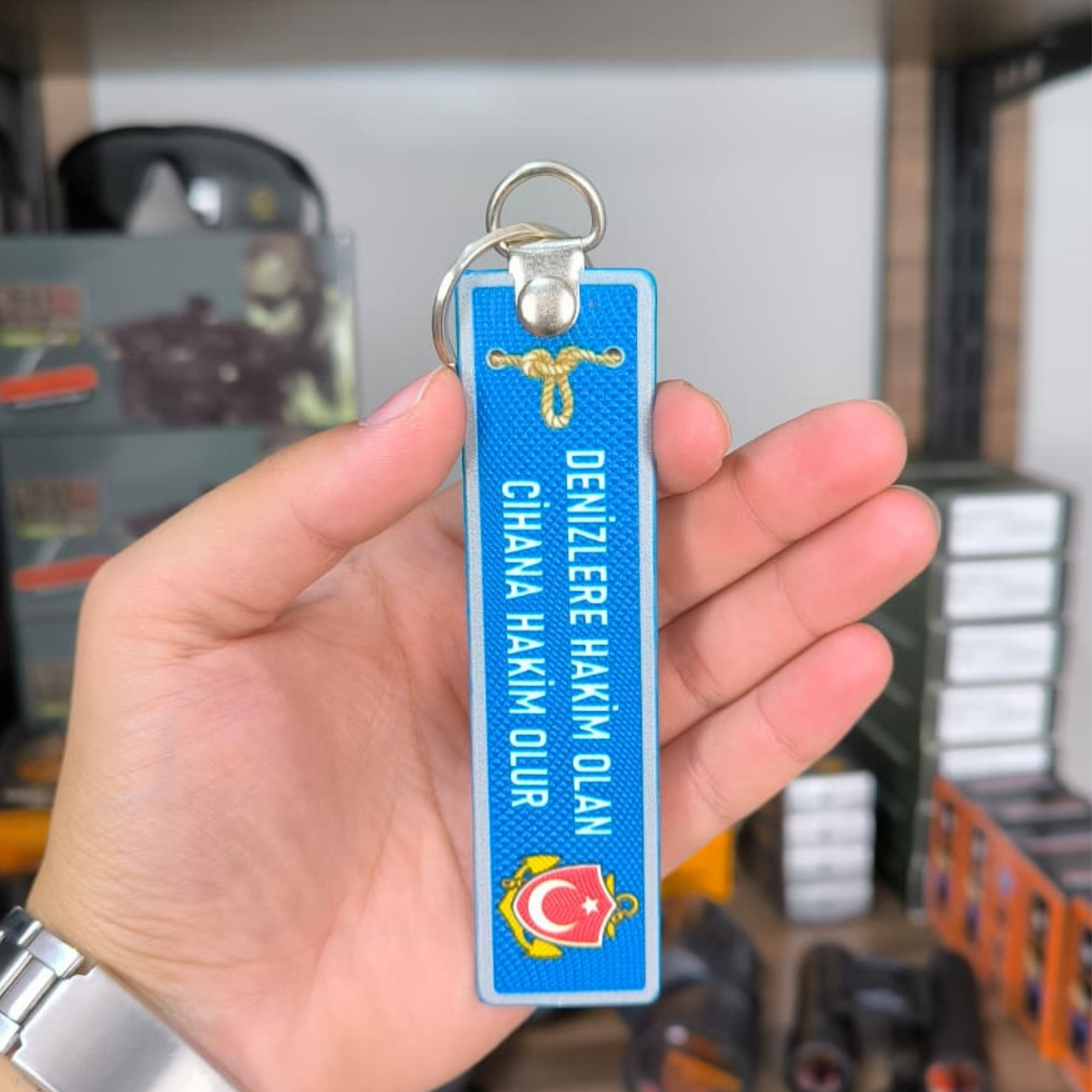 Türk Deniz Kuvvetleri tasarımı ve güçlü mesajı ile öne çıkan “Denizlere Hakim Olan Dünyaya Hakim Olur” yazılı anahtarlık; hediyelik eşya mağazaları, askeri malzeme satıcıları ve online satış yapan işletmeler için yüksek talep gören tematik bir üründür. Anlamlı tasarımı sayesinde vitrin ve raflarda dikkat çeker, özellikle millî ve tarihî ürün kategorilerinde satış potansiyeli sunar.